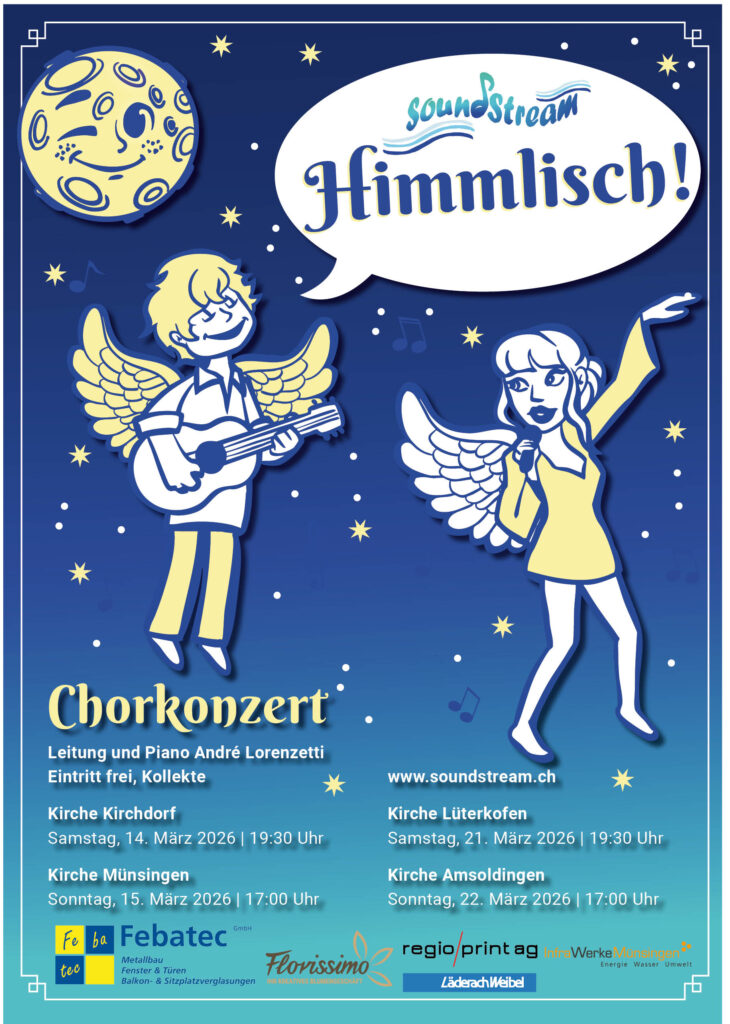 SoundStream ist ein gemischter Pop-Chor aus dem Aaretal, bei welchem Vielseitigkeit Programm ist: Wir singen, was uns gefällt. Arrangiert werden die meisten Stücke von André Lorenzetti, dem musikalischen Leiter von SoundStream: Unser Chor hat zum Ziel Musik zu machen, die berührt und unter die Haut geht. Wir sind ein engagierter Laienchor ohne Probenzwang, der sich laufend erneuert und eine schöne Altersdurchmischung aufweist. Interessierte Leute, die gerne mal bei einer Probe rein hören und mitmachen möchten sind uns immer sehr willkommen. Dies gilt insbesondere (aber nicht nur) für Tenöre und Bässe, deren Register sich ganz speziell über ein Aufstockung freuen würden. Die Proben finden jeweils am Dienstag um 19:30 Uhr in den Räumlichkeiten der Sek 1 in Wichtrach statt, Schulferien ausgenommen.